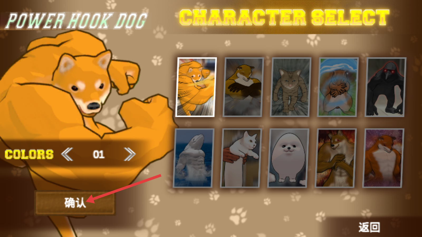 1、角色选择页,选定【PowerHookDog】,点击【确认】,进入格斗对战。
