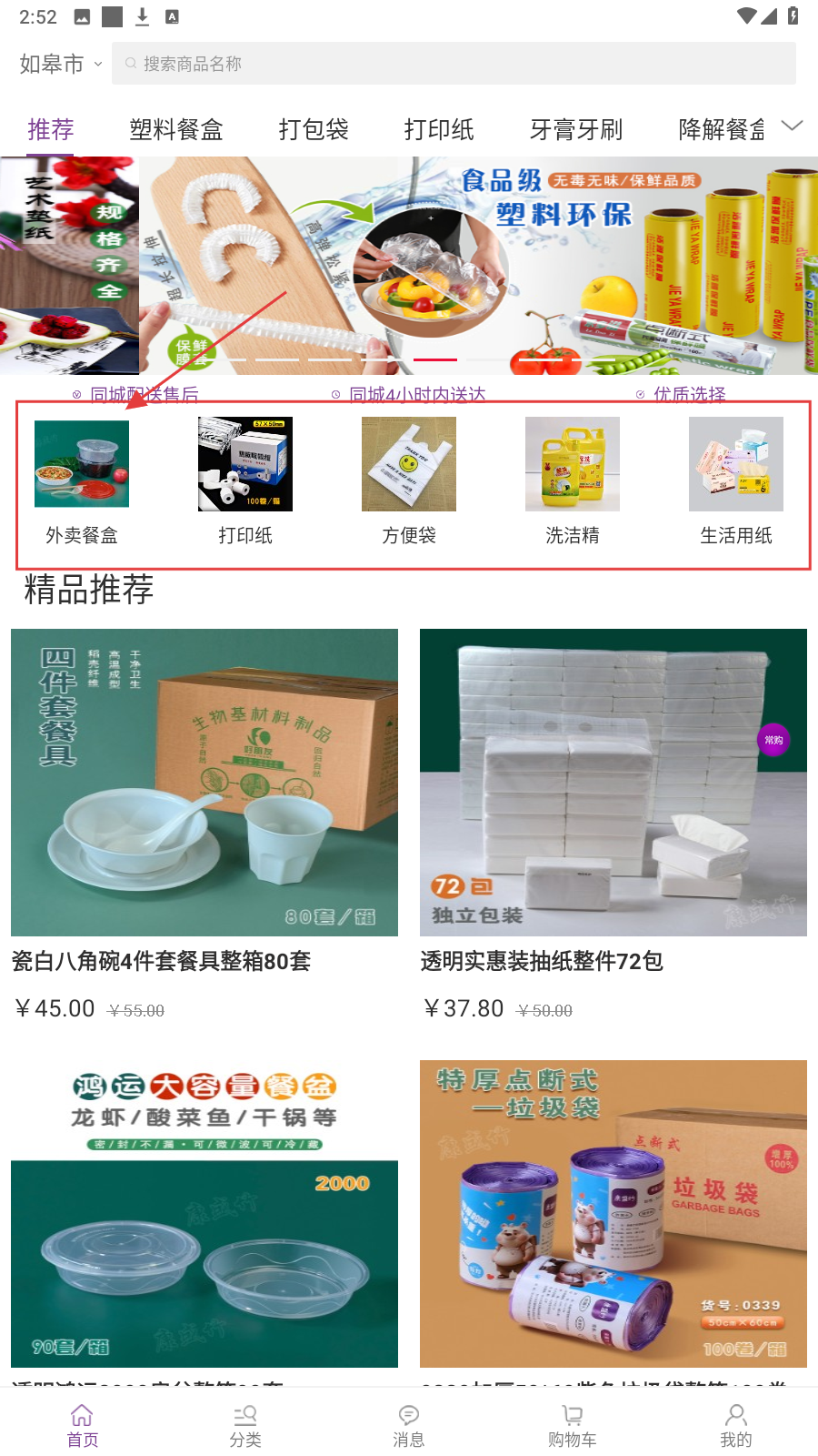1、首页选商品品类,如【外卖餐盒】,进入对应分类页面找商品。