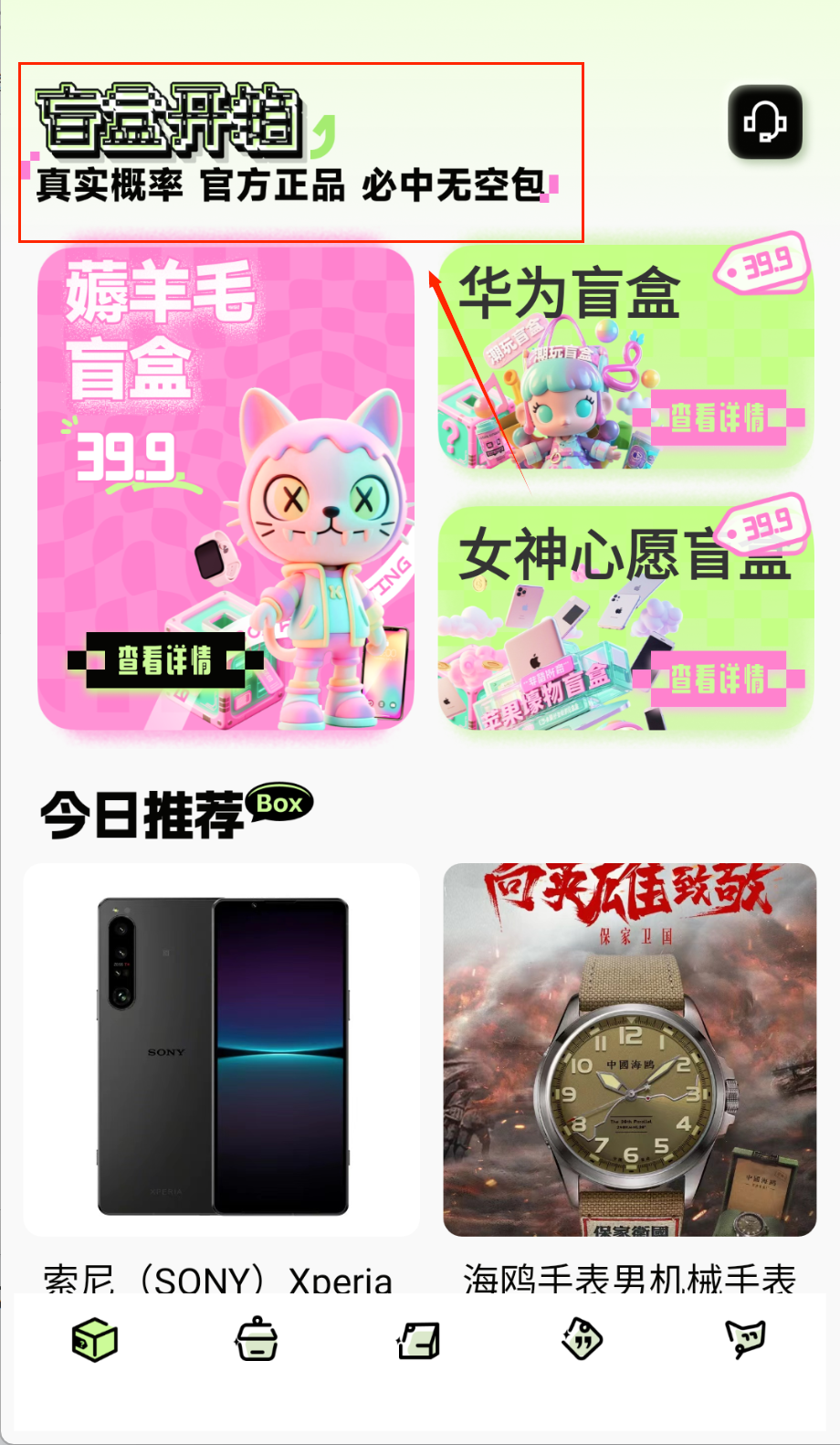 1、下载安装后完成账号注册并登录系统,首次使用可领取新人盲盒优惠券,在首页浏览各类主题盲盒系列。