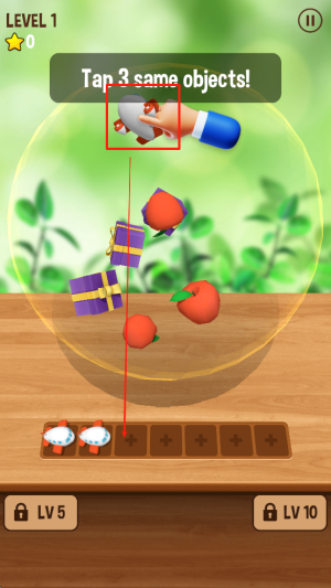 3、进行游戏:在游戏过程中,根据“Tap 3 same objects!”提示,点击三个相同的对象。