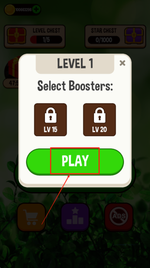 2、选择增益:在“LEVEL 1 Select Boosters”界面,选择增益后点击“PLAY”开始游戏。