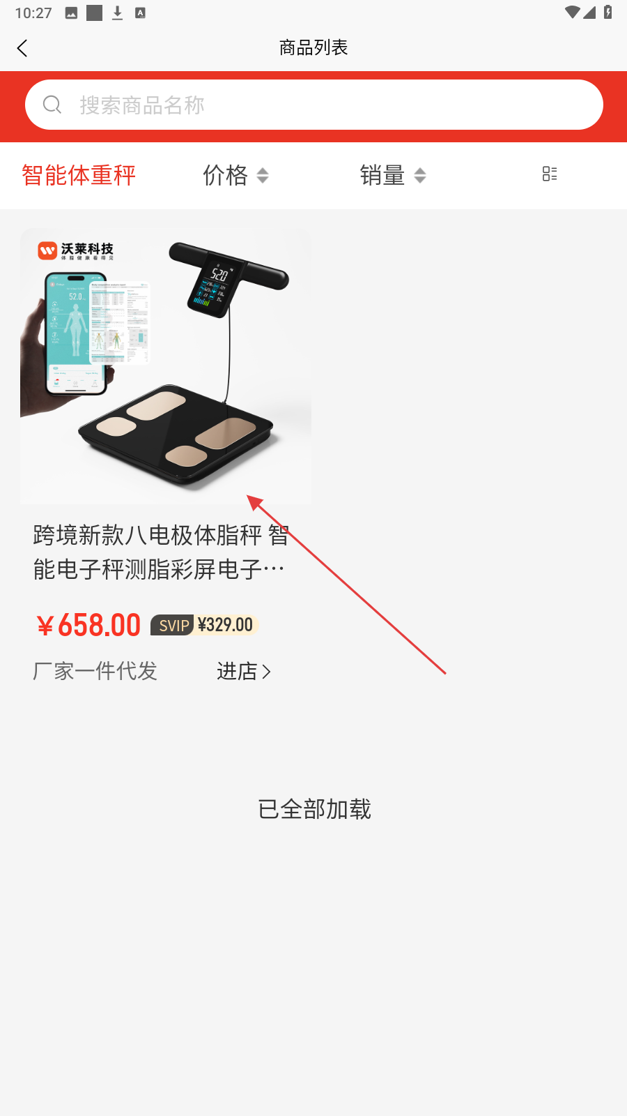 3、商品列表页选心仪商品,如【跨境新款八电极体脂秤】,查看详情。