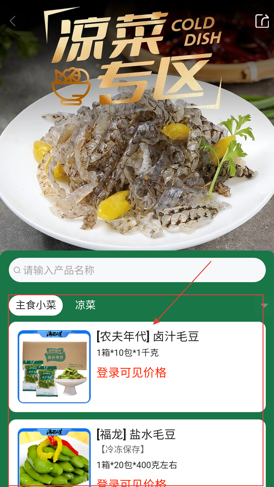 1、首页选分类,如【凉菜专区】,进入找对应菜品。