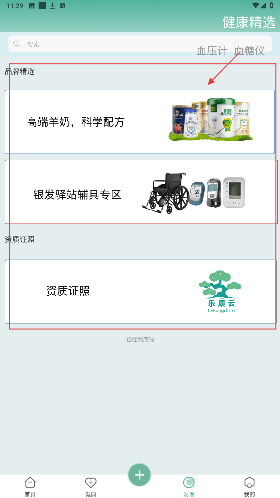 3、切换【发现】页,逛【品牌精选】,选【高端羊奶】等专区看健康产品。