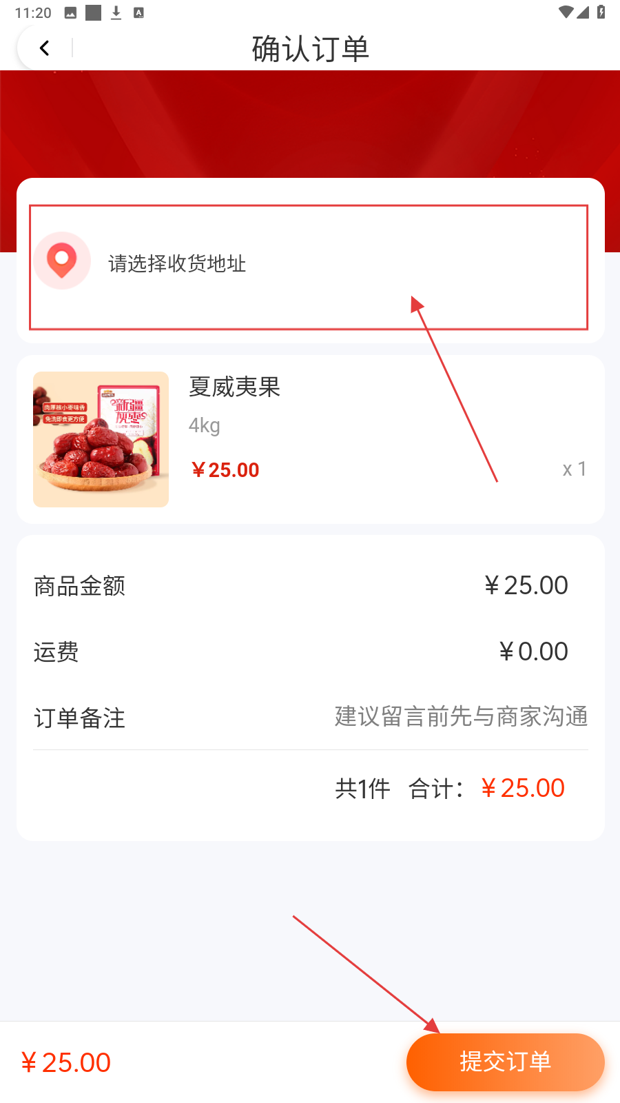 4、确认订单页填【收货地址】,核对金额点【提交订单】完成购买。