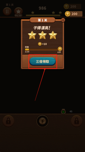4、完成关卡后,点击“三倍领取”按钮获得奖励,然后继续下一关的游戏。