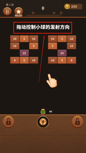 2、学习基本操作,通过拖动来控制小球的发射方向,掌握游戏的基本玩法。