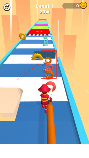 2、控制角色移动:操控救援小人在赛道奔跑,灵活调整方向避开障碍物,保护水管不被划破,维持救火能力。