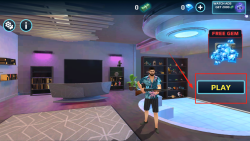 2、点击“PLAY”开始游戏,随后领取“FREE GEM”。