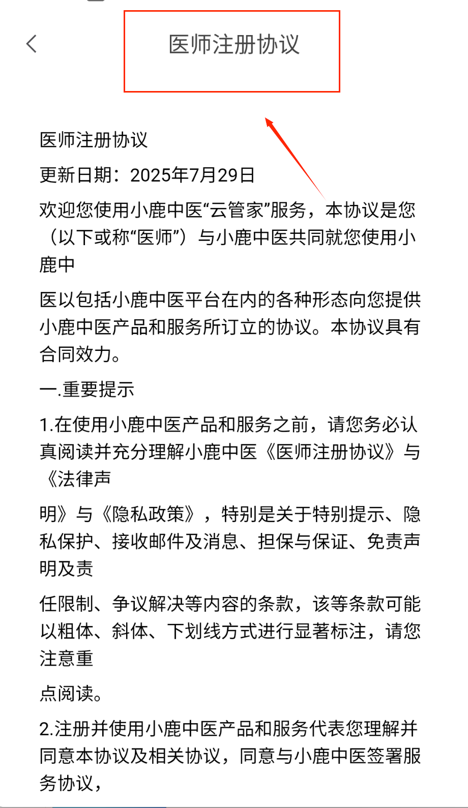 3、注册时要认真阅读医师协议,了解双方权利义务很重要。并且更新日期也要特别注意一下。