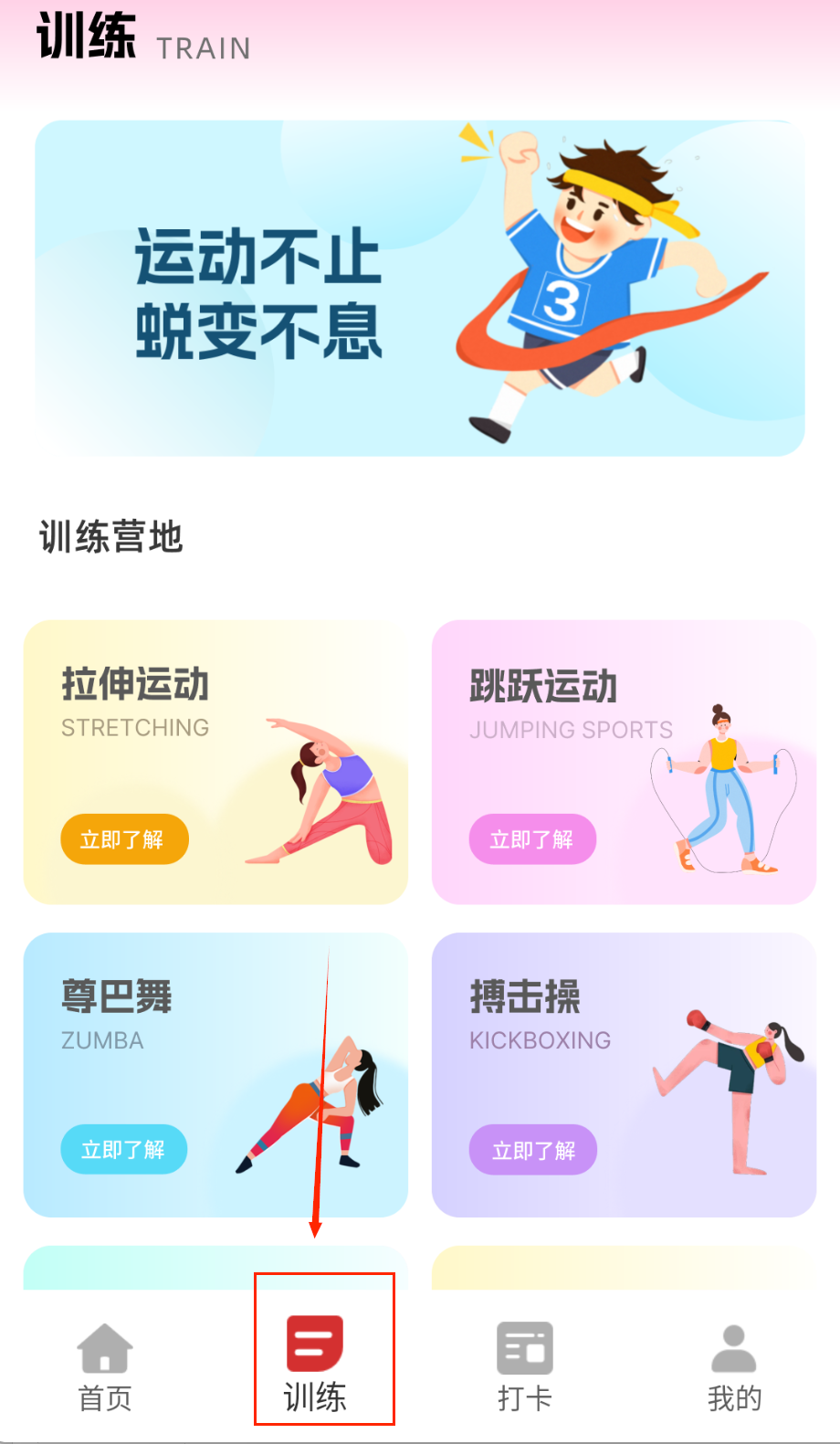 2、在主界面可以选择适合孩子的运动课程,包括初级、中级和高级难度。每个课程都有详细的教学视频和动作分解,确保动作标准有效。