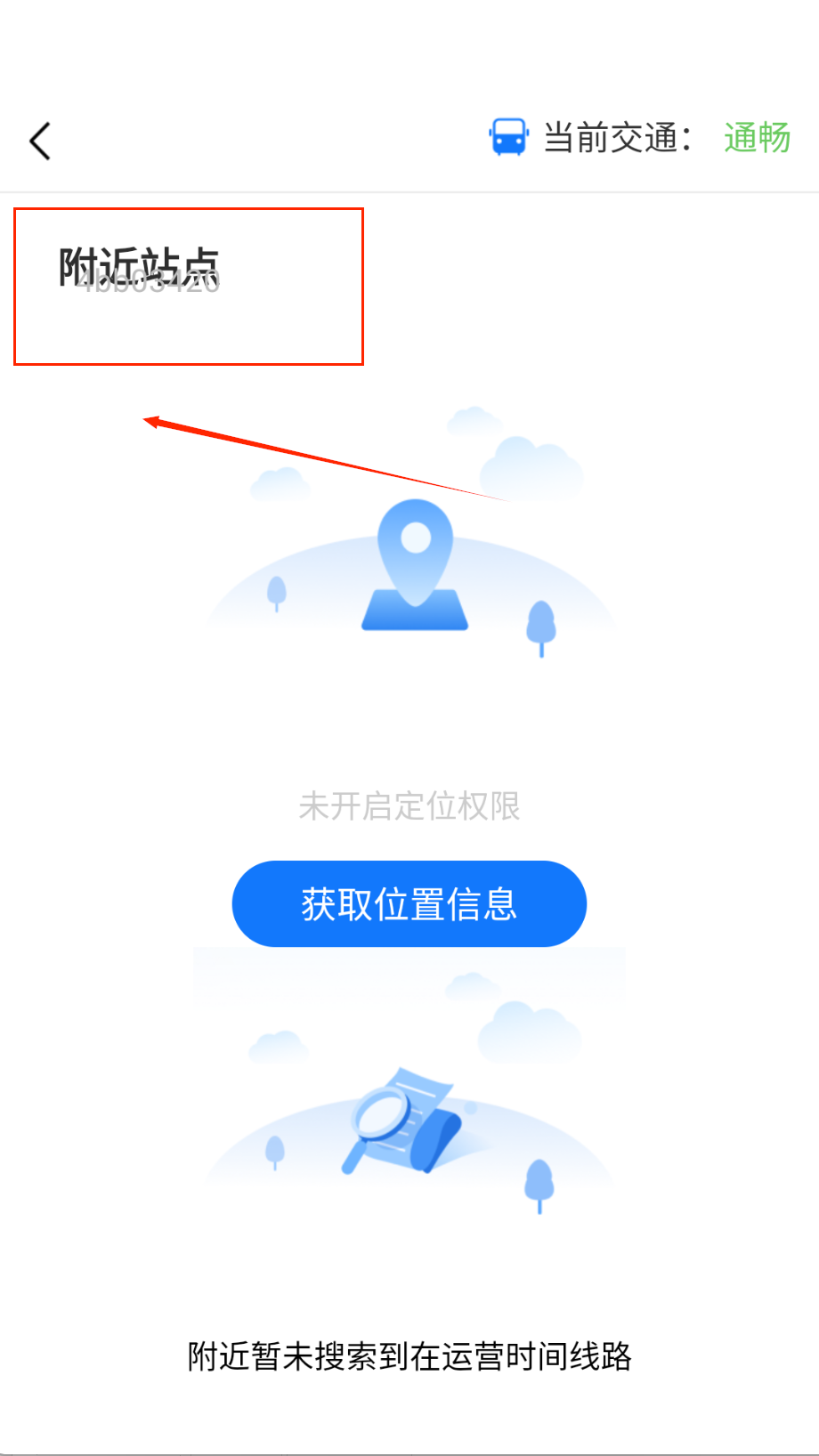 1、打开应用后首先允许定位权限,系统会自动显示当前位置附近的公交站点。点击站点名称可查看经过该站点的所有公交线路。