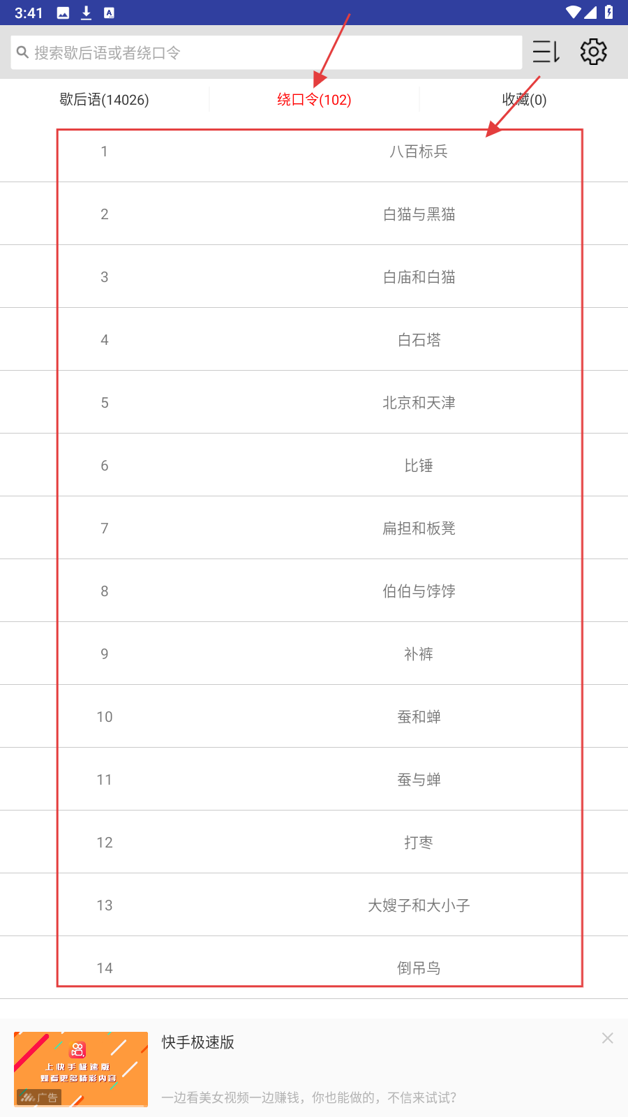 4、切换到【绕口令】板块,选感兴趣绕口令(如“八百标兵”),开启绕口令练习。