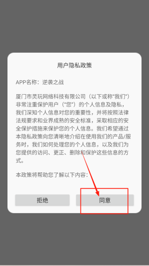 2、在《用户隐私政策》页面点击“同意”接受条款。