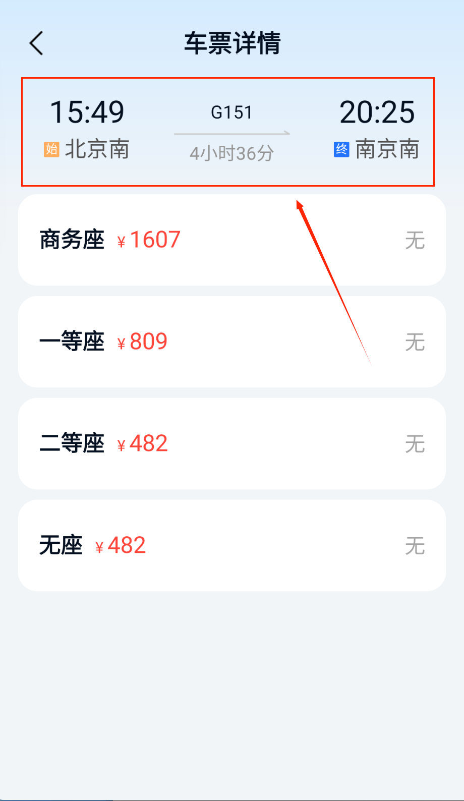 2、在查询结果页面可查看不同车次或航班的详细信息,包括出发时间、票价余票和行程时长等。支持按价格、时间等条件筛选排序。