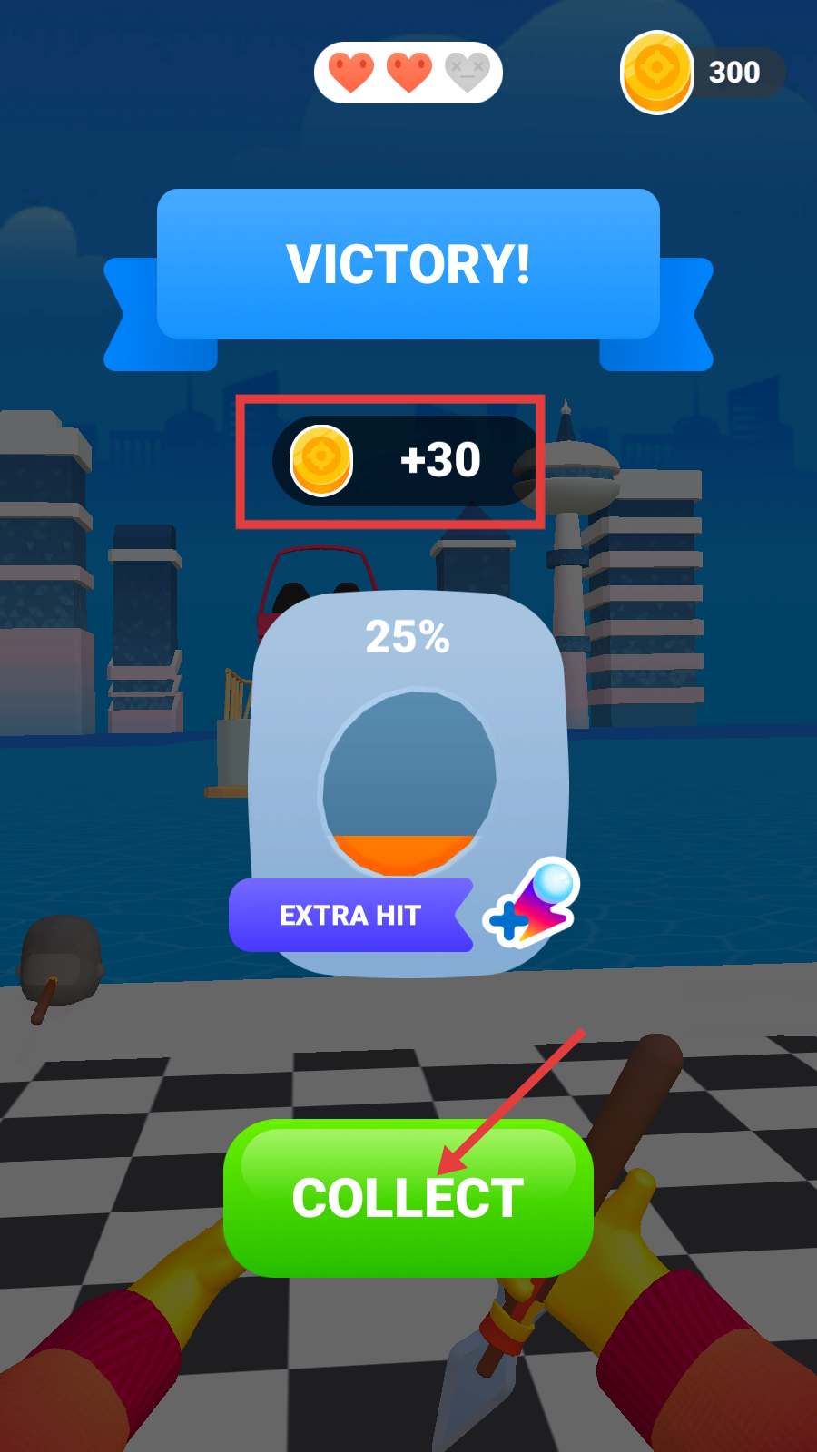 4、胜利后点击绿色【COLLECT】,领取【 30金币】奖励。
