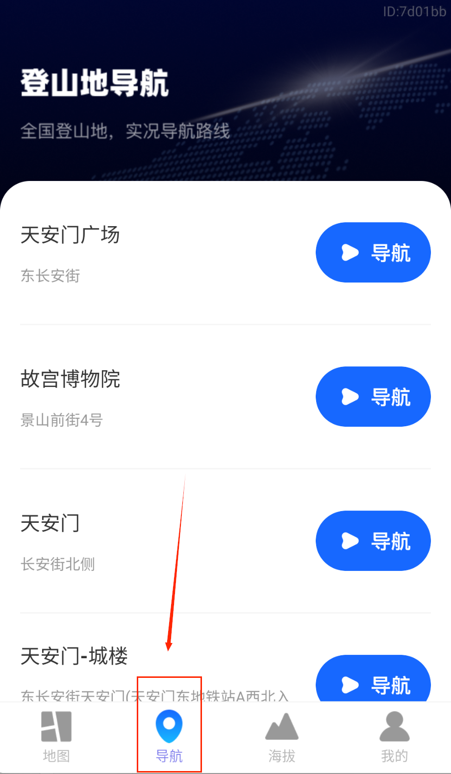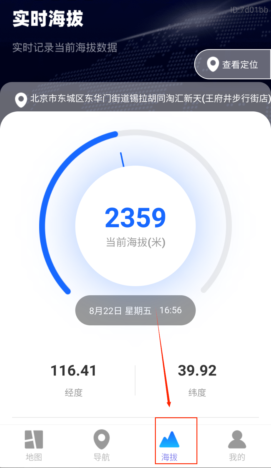 3、开始导航后进入全屏模式,实景地图会叠加前进方向和距离提示。海拔计实时显示当前高度,支持手动记录关键点位坐标。