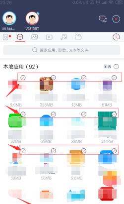 然后选择需要传输的应用,点击app下方的“传文件”按钮,手机应用就会自动传到另一个手机上了。(一次可以传输多个应用)