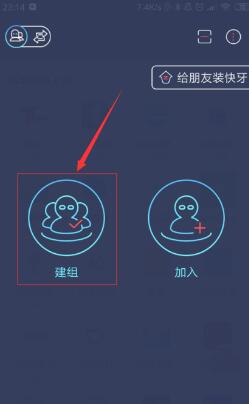 两部手机均安装快牙app,快牙app可以从各大应用市场进行下载。下载安装完成后,打开快牙app,点击图示按键进入创建组的页面