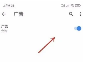 5、最后在广告页面中,我们在页面上方找到“广告”选项,点击该选项后面的开关按钮将其打开,即可成功开启广告屏蔽功能了(如图所示)。