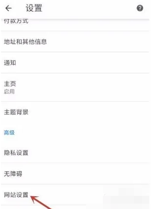 3、进入到设置页面后,我们在页面上找到“网站设置”选项,点击它就能进入到网站设置页面(如图所示)。