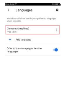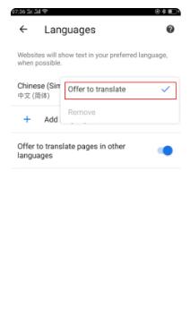 7、在弹出的菜单选项中选择offer to translate功能,这样手机chrome浏览器就显示为中文了