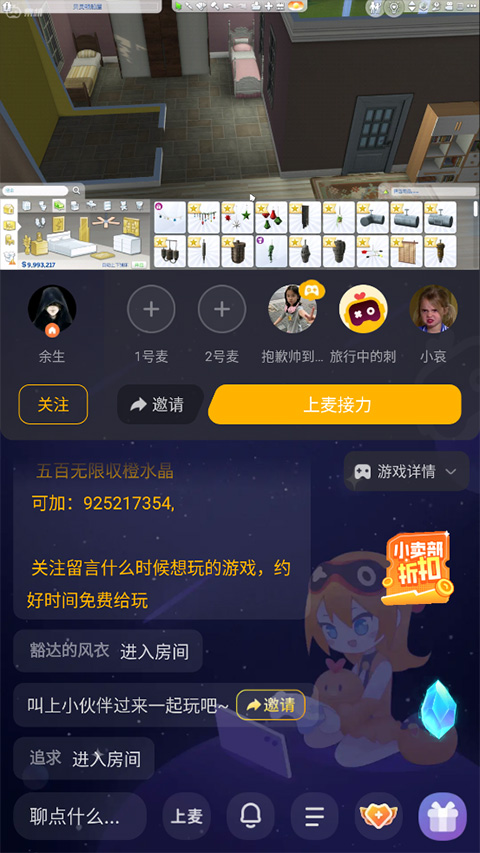 如果玩家超过了免费时长则需要通过房间打赏来获得免费时长,也就是说玩家可以通过在游戏房间内给别人评论点赞获得加时卡,消耗加时卡即可增加游戏时间