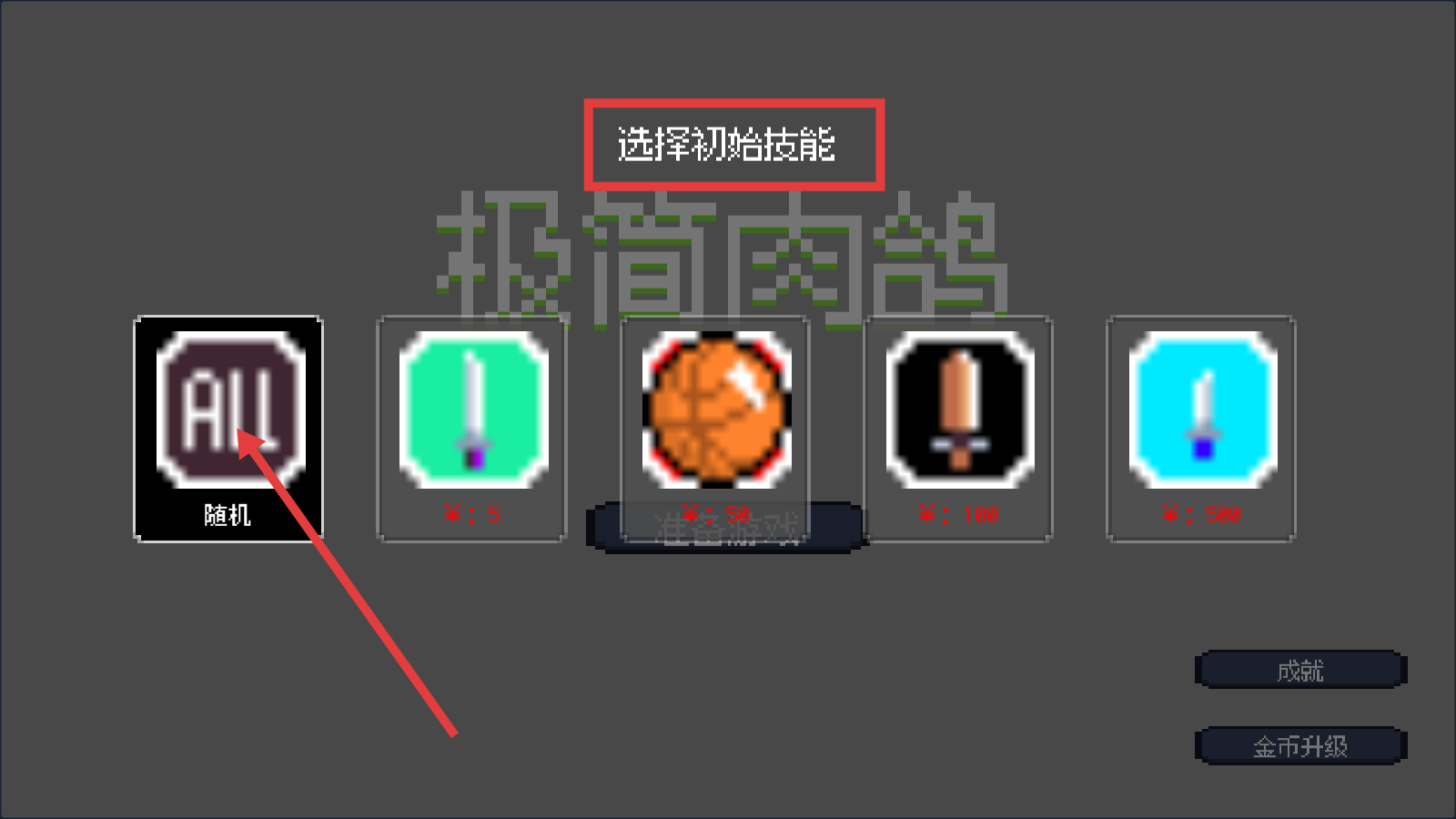 1、选择初始关卡,选择初始技能进入像素世界,操控骑士角色开启冒险。