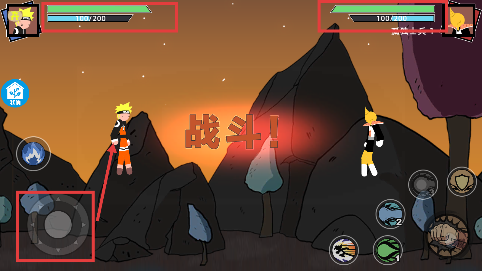 2、战斗时用左侧【虚拟摇杆】控角色移动,关注双方【血条-法力条】,规划技能释放。