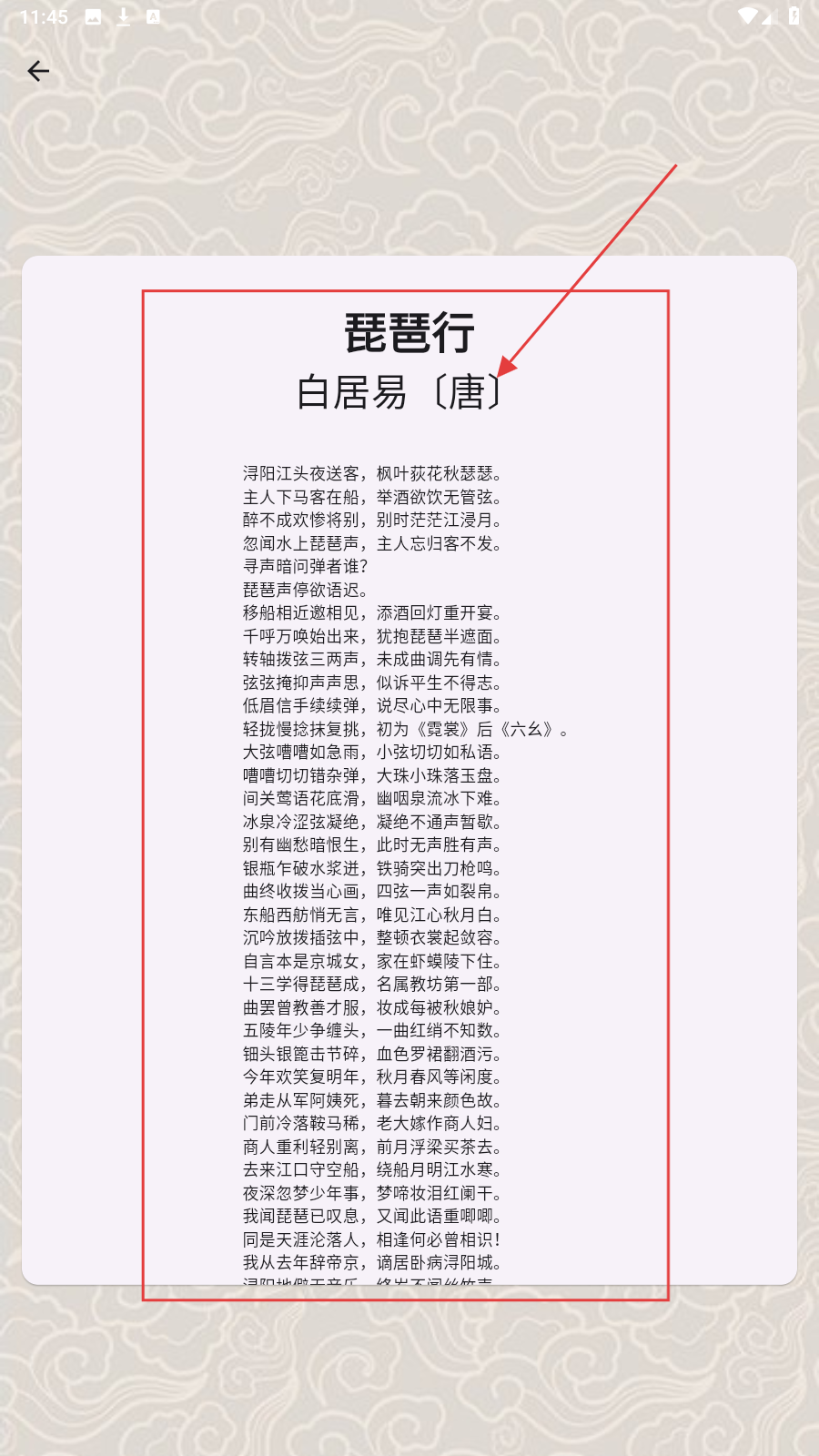 3、点击代表作品,像【琵琶行】,可阅读【白居易】的完整诗词内容。