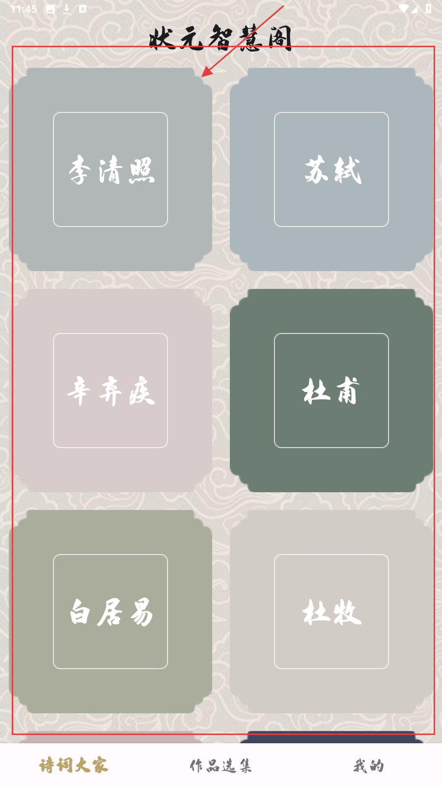 1、进入状元智慧阁,可选择【李清照】【苏轼】等诗词大家,开启诗词探索之旅。
