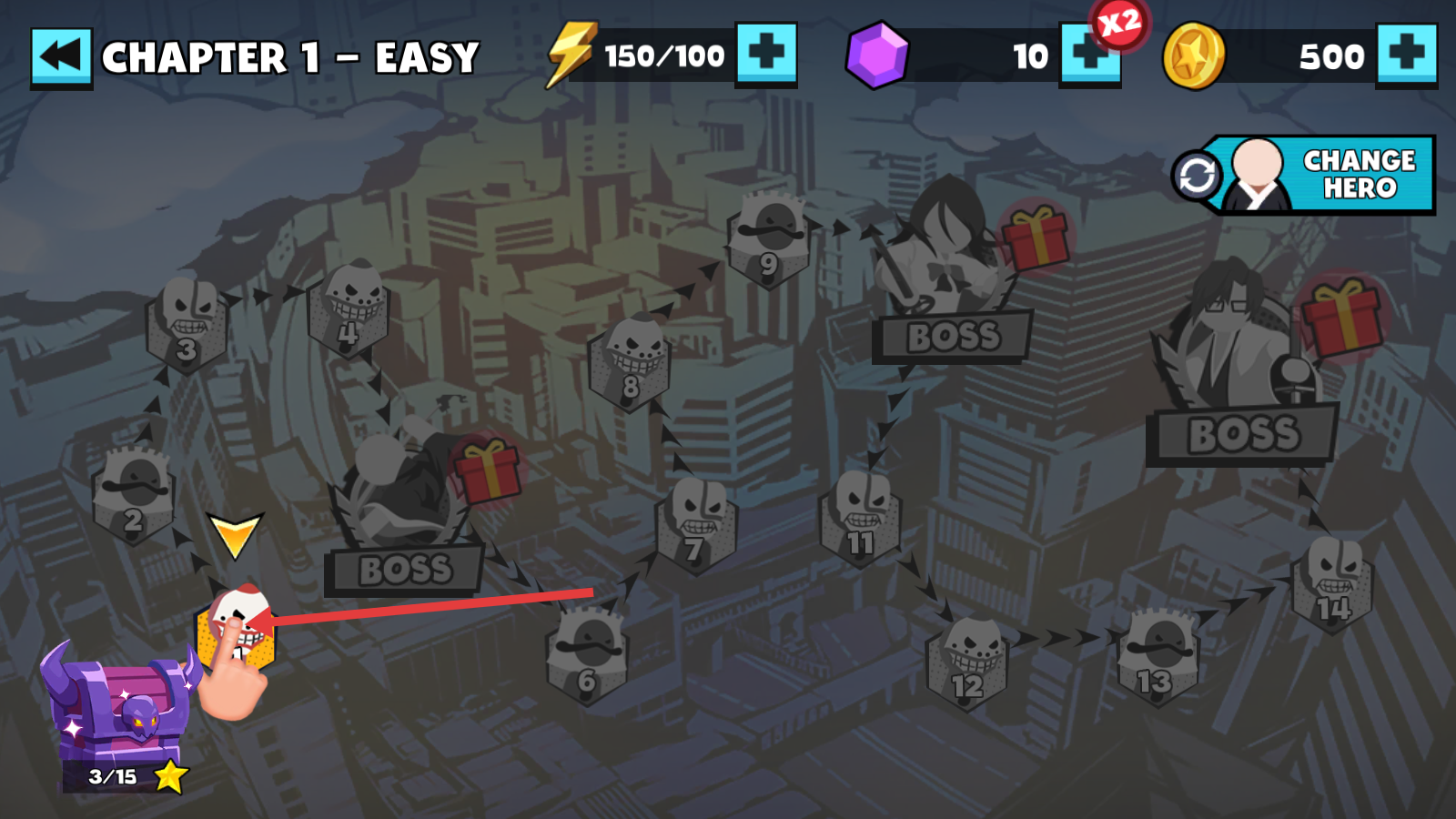1、进入【CHAPTER1-EASY】,选择目标关卡,开启战斗。