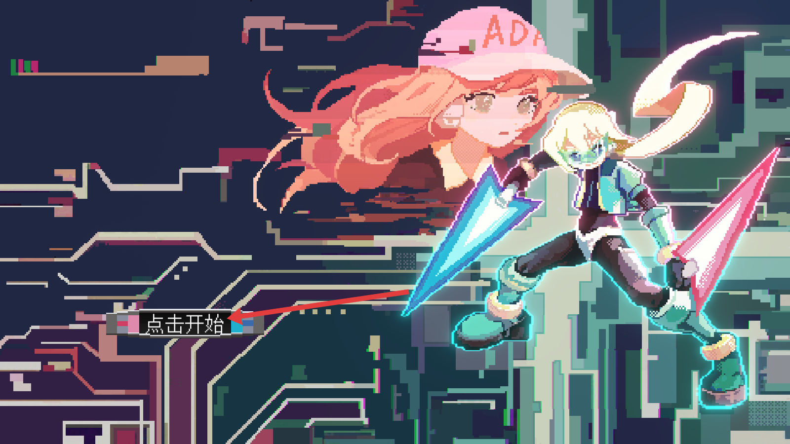 1、进入游戏界面,点击【点击开始】,开启像素风格冒险,解锁角色战斗与探索玩法。