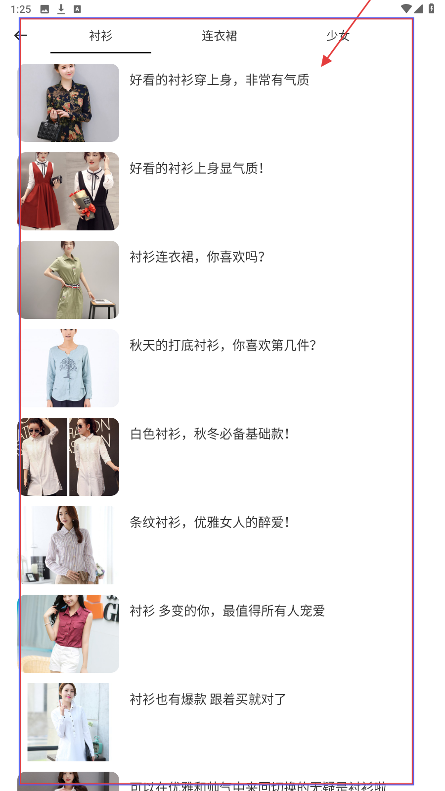 2、进入【衬衫】分类页,查看不同搭配文章,选感兴趣的点击阅读详情。