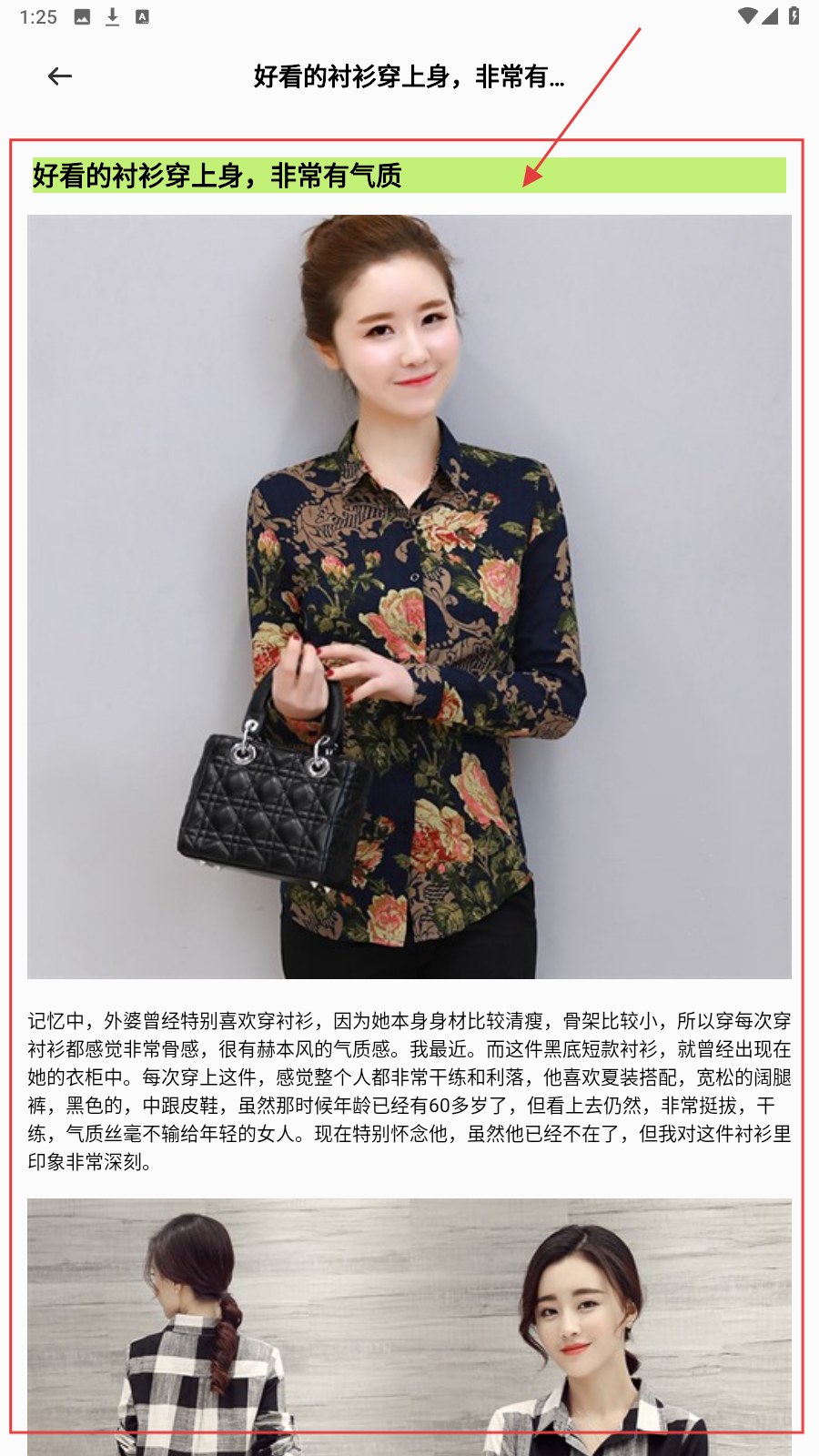 3、打开穿搭文章,如【好看的衬衫穿上身,非常有气质】,学习搭配思路与故事。