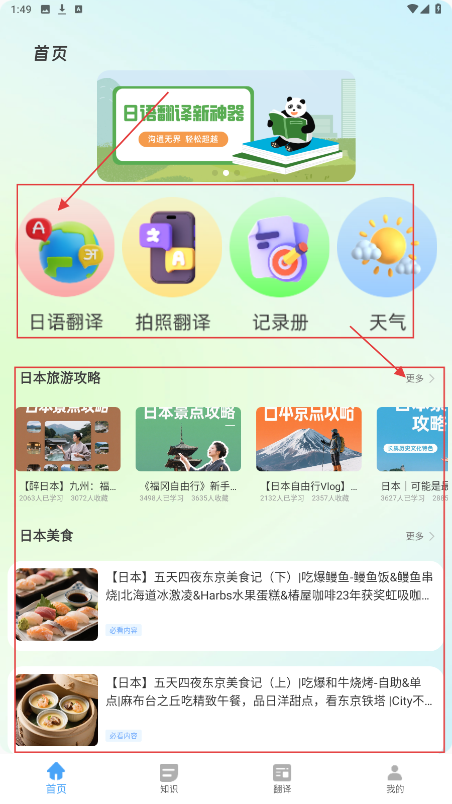 1、打开应用首页,点击【日语翻译】,进入翻译页体验中日互译功能。