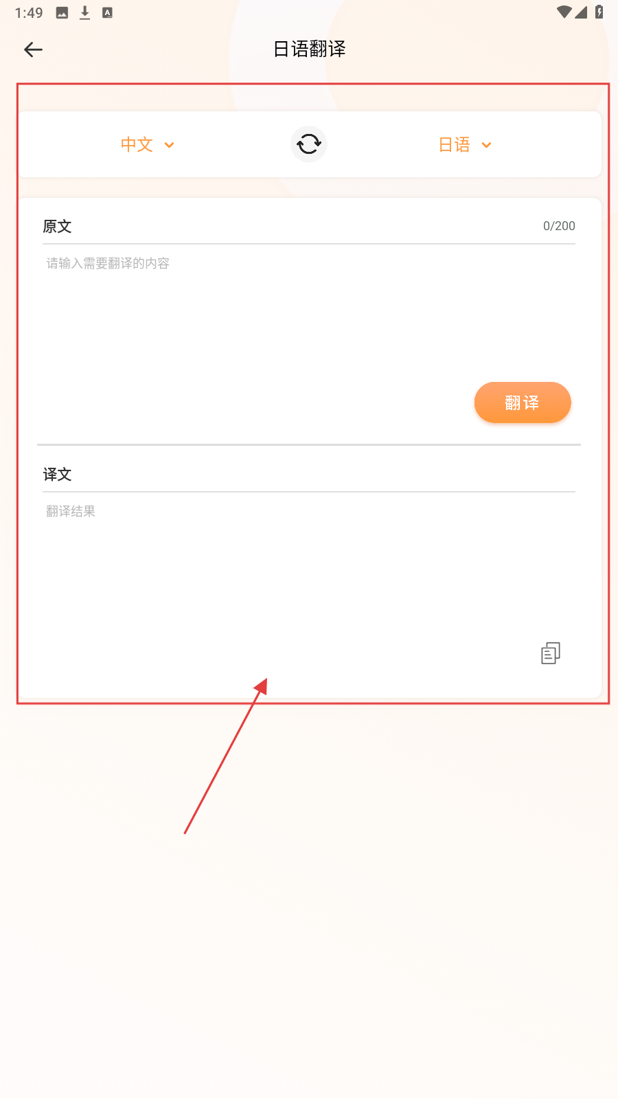 2、在翻译页输入文字,点【翻译】,获取日语译文,辅助日语学习。