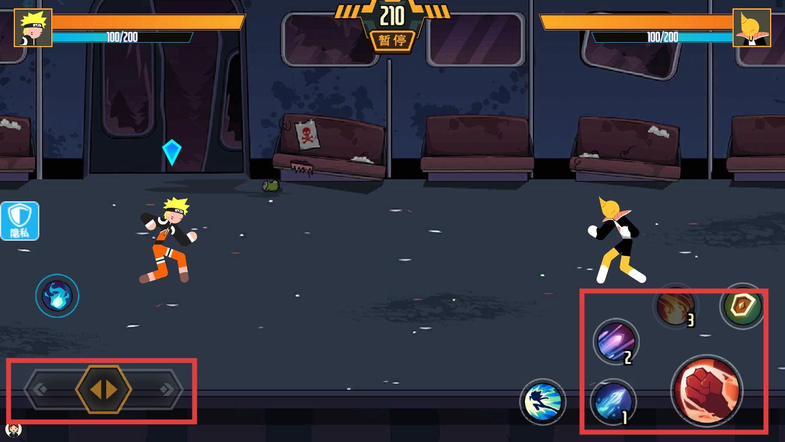 2、战斗中用左侧【虚拟摇杆】控移动,右侧技能图标释放招式,组合操作对抗敌方角色。