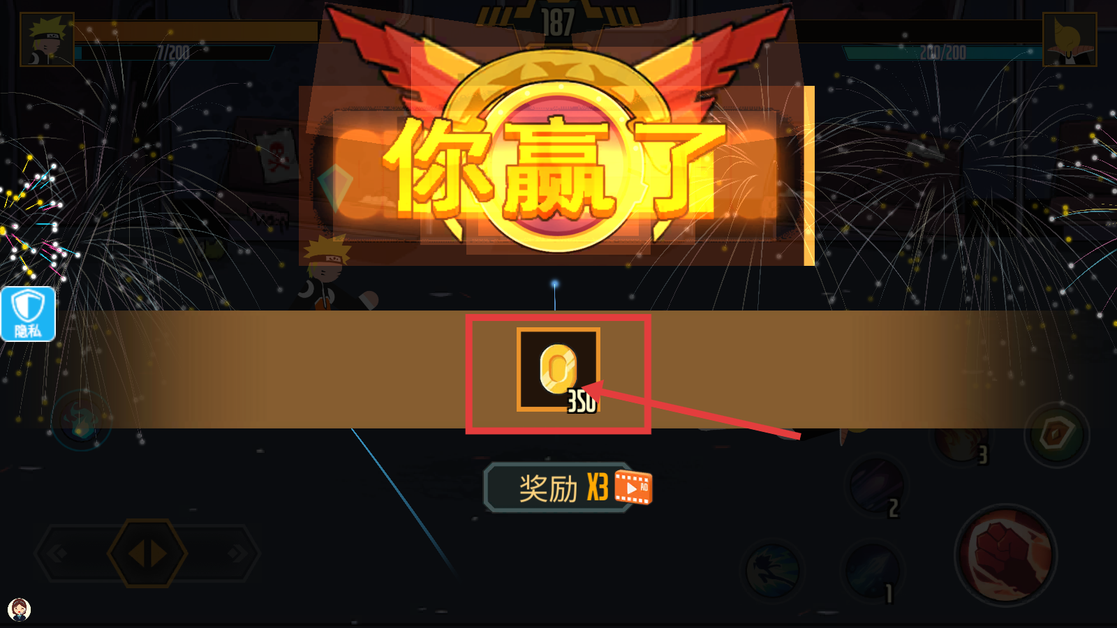 4、胜利后领取【350-金币】奖励,积累资源用于角色养成或装备提升,为后续战斗做准备。