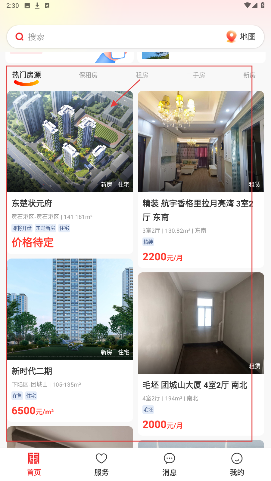 1、找新房二手房等,点首页【新房】【二手房】等对应入口,快速筛选房产类型。