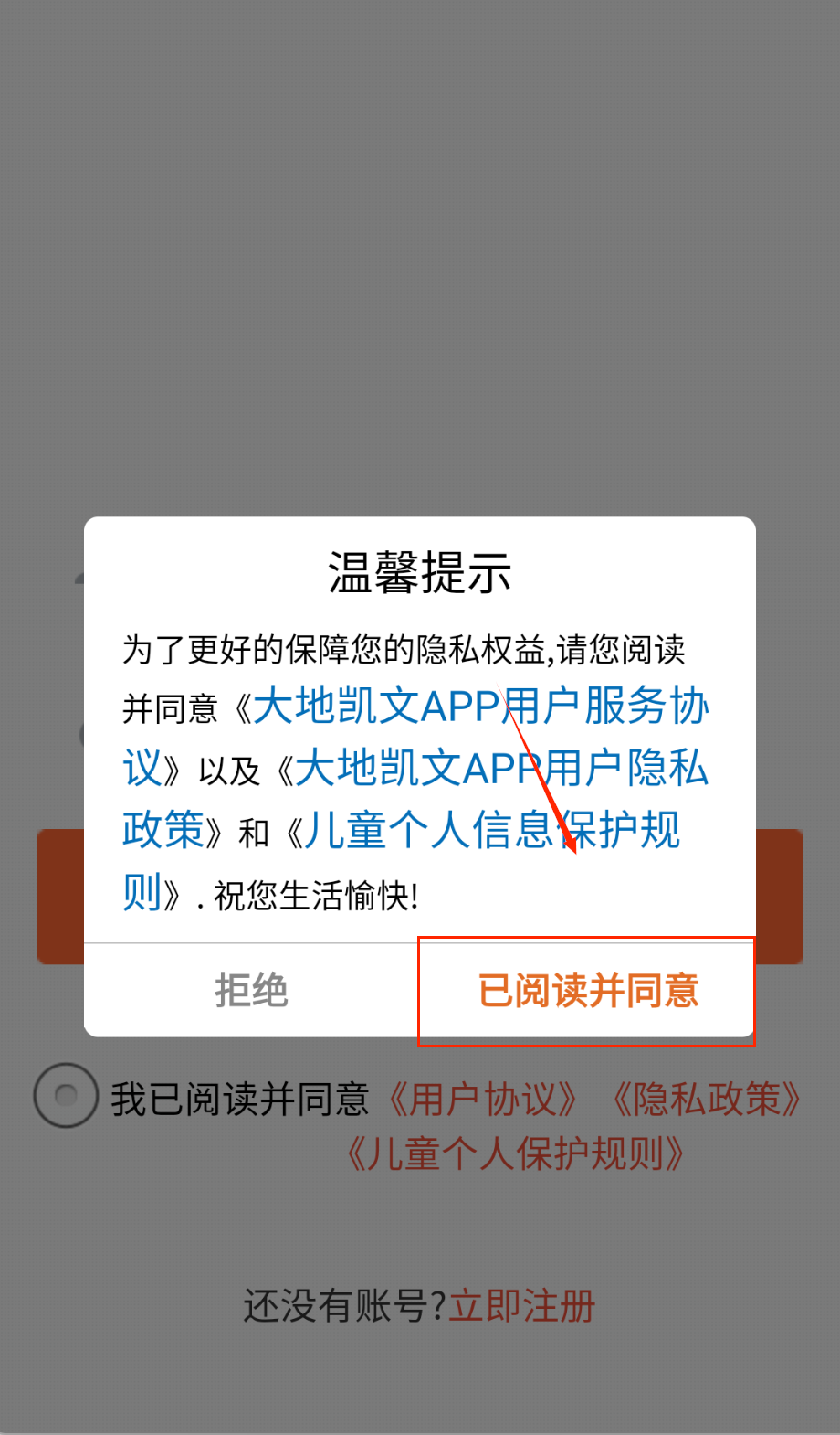1、打开软件先看温馨提示,记得仔细阅读用户协议和隐私政策哦。同意条款后才能继续使用,点右下角按钮确认就好。