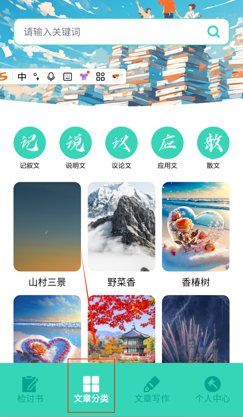 2、在文章分类页面浏览各类范文,包括记叙文、议论文等体裁。阅读优秀范文获取写作灵感,学习文章结构和表达技巧。