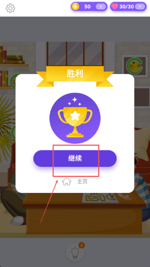 4、完成关卡。成功找到所有目标后,点击“继续”按钮完成关卡并领取奖励。