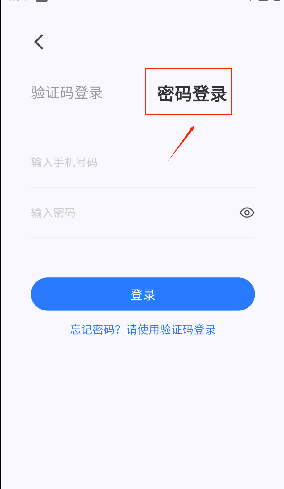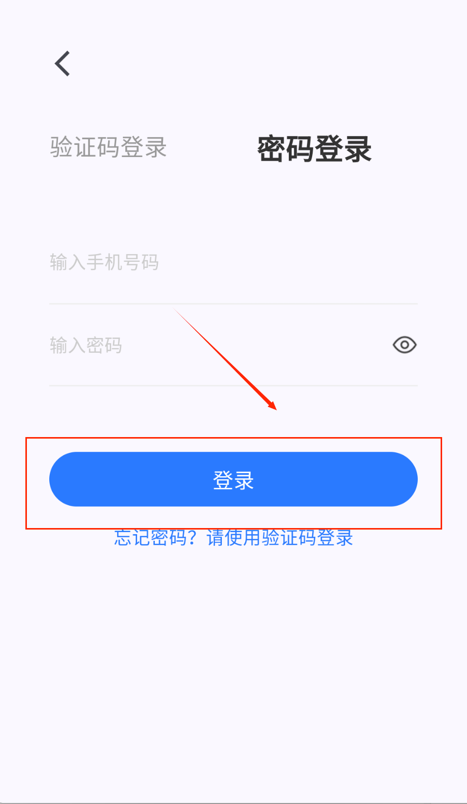4、最后点击蓝色的登录按钮就可以啦。忘记密码可以用验证码登录,或者试试找回密码功能呢。