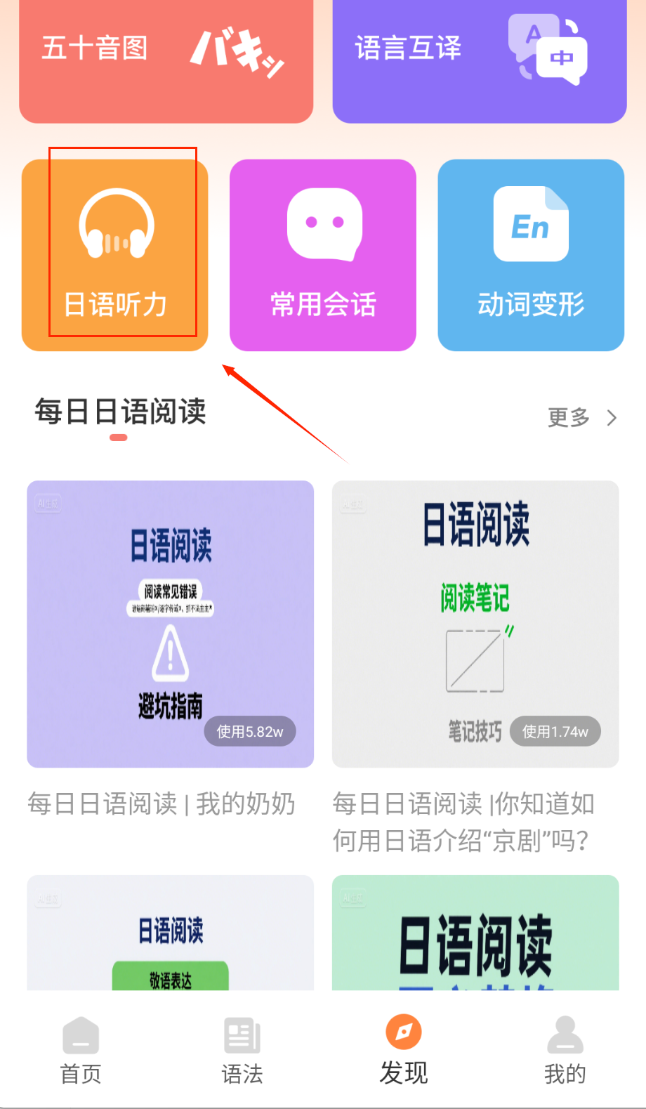 1、下载安装后选择适合自己日语水平的学习阶段,系统会推荐相应的学习内容。在首页浏览各类功能模块,了解软件布局。