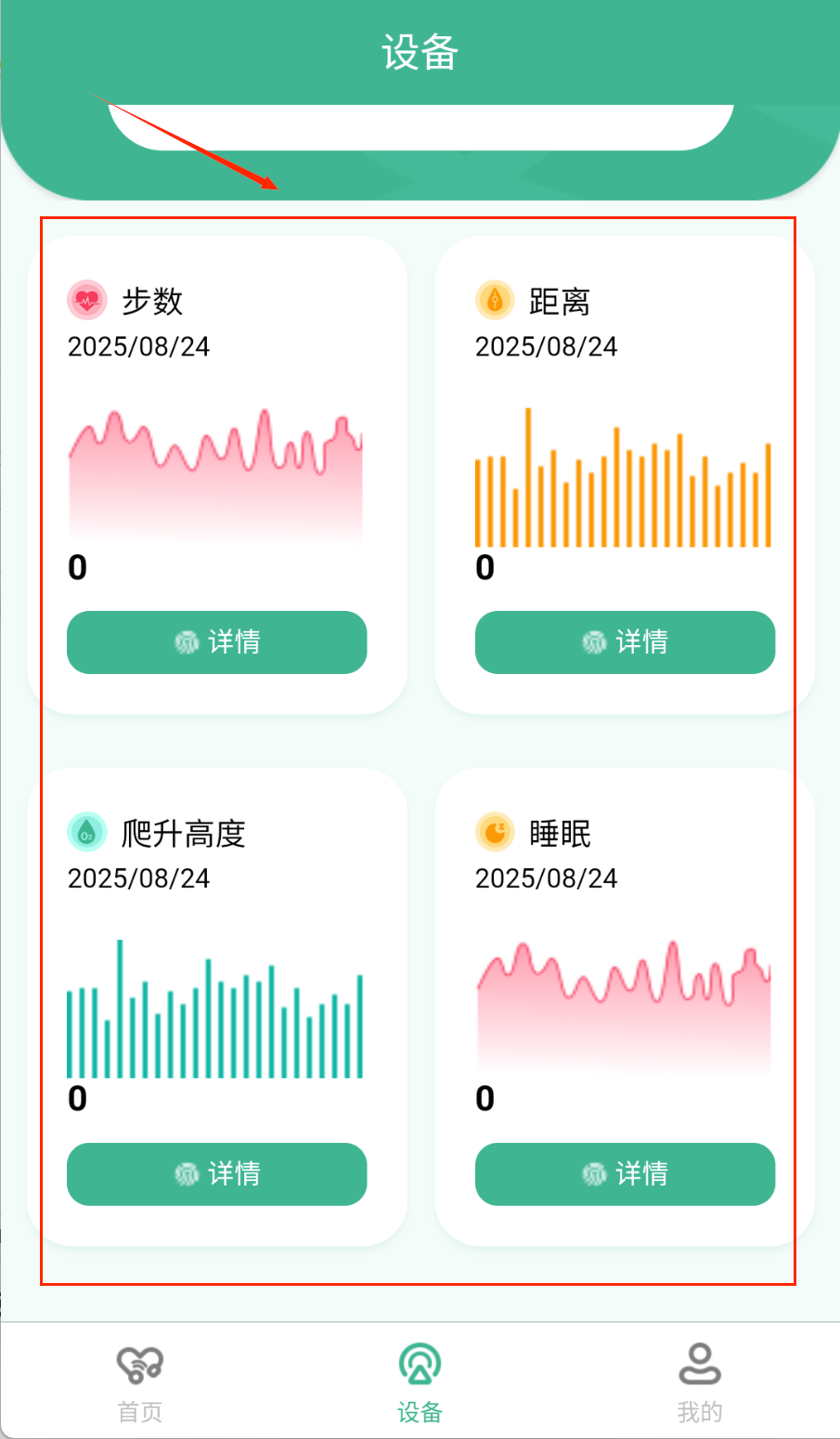 2、佩戴智能戒指开始日常监测,系统会自动记录血氧、心率和血压等基础数据。实时监测页面展示当前身体指标,数据每分钟自动更新。