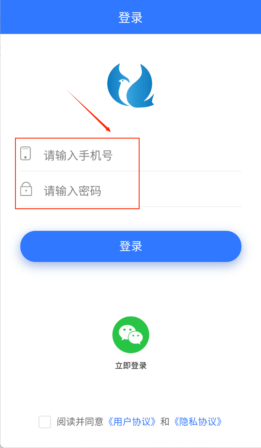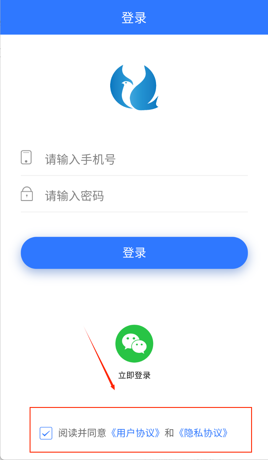 2、密码登录的话要在密码框输入6-12位密码,点击右侧眼睛图标可以显示或隐藏密码。记得勾选同意协议选项。