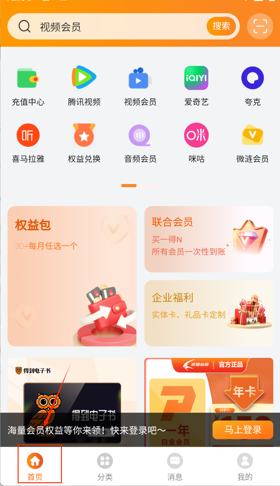 1、下载安装后浏览首页推荐会员商品,了解各平台会员权益和价格。通过分类筛选或搜索功能快速找到目标会员服务。