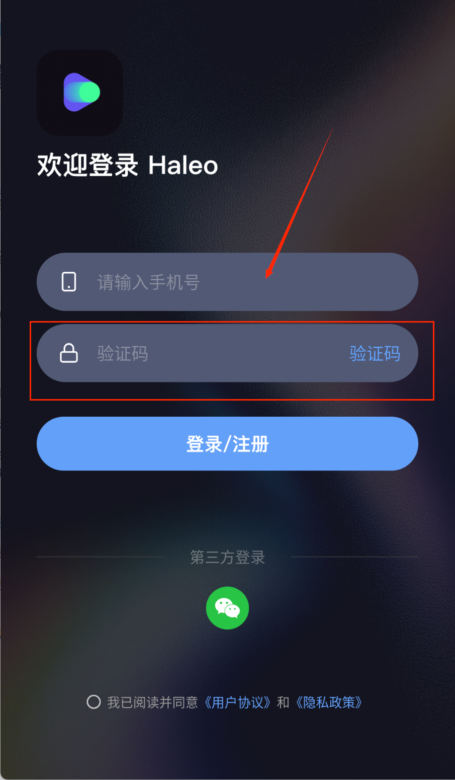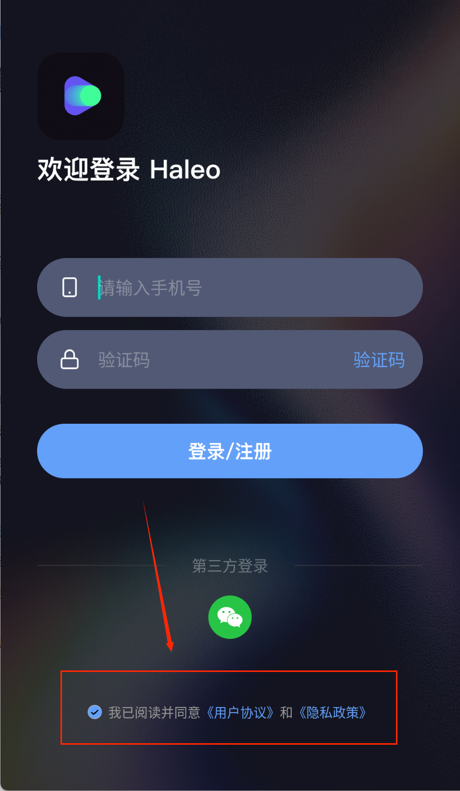 2、获取验证码后要及时填写,那个蓝色登录按钮很显眼。记得先勾选同意协议的小方框,要不然无法登录。