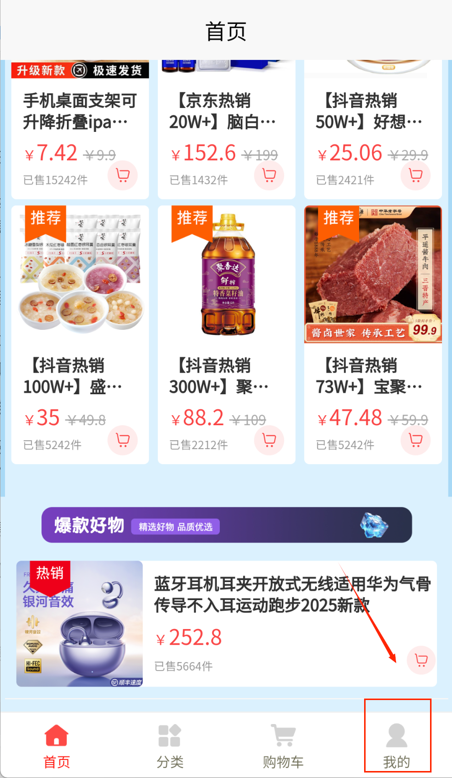 1、下载安装后浏览首页推荐商品,了解当前促销活动。可以通过分类导航或搜索功能快速找到目标商品。